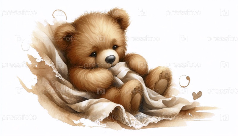 Тедди-медведь с одеялом Аквариальное художественное печать, Ai generated image