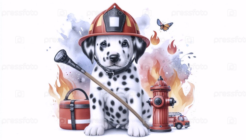 Щенок как пожарный Акварельный арт-принт, Ai generated image