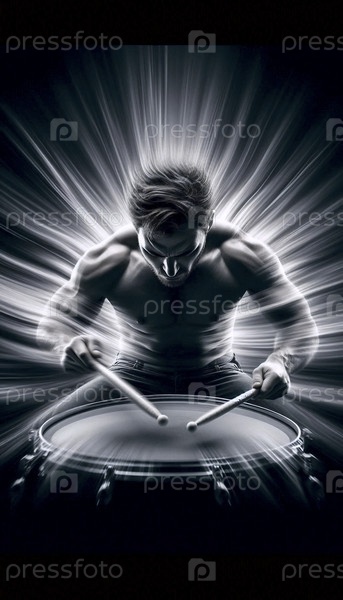 Фото длительной экспозиции, захватывающий барабанщик в среднем росте, Ai generated image