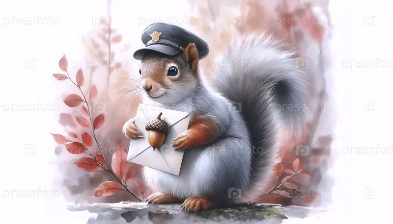 Белок доставляет письмо акварельная художественная печать, Ai generated image
