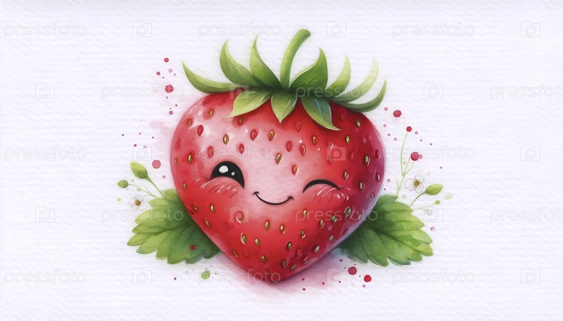 Ягоды с дерзкой улыбкой акварельная художественная печать, Ai generated image