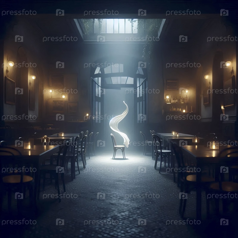 Более широкий снимок с входа в кафе, сцена как одинокое чудо, Ай создал изображение