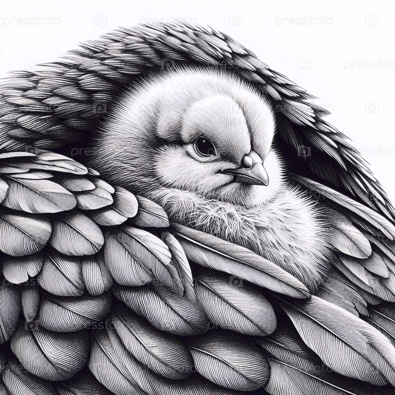 цыпленок под крылом чернила рисунок