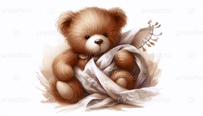 Тедди-медведь с одеялом Аквариальное художественное печать, Ai generated image