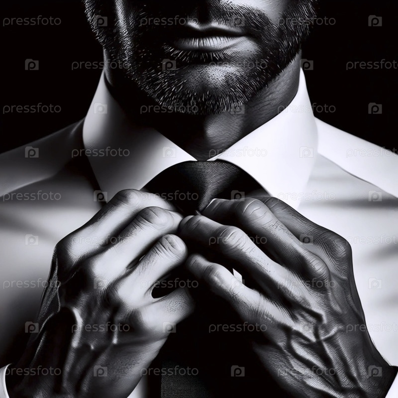 Руки мужчины связывают галстук на другом человеке, Ai generated image