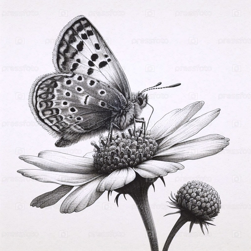Бабочка на цвете чернил рисование художественная печать, Ai A generated image