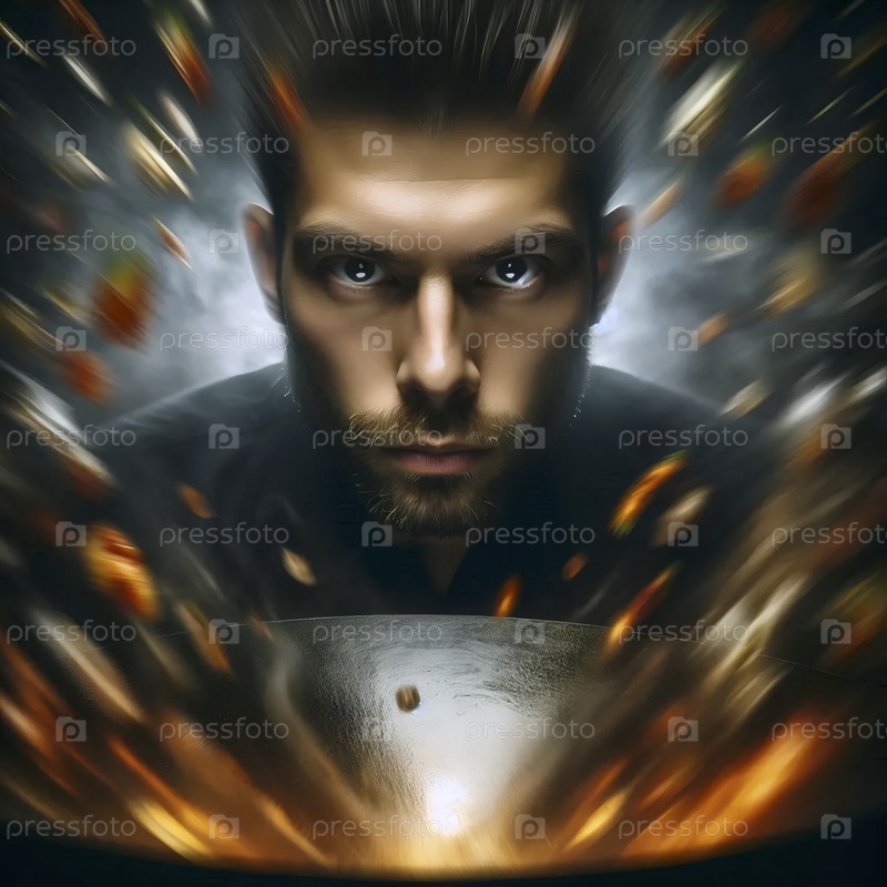 Тесный портрет, изолированный в движении повара с ваком, Ай создал образ