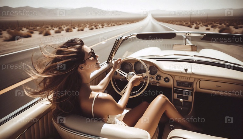 Пустынный драйв в ретро-кабриолет, Ai generated image