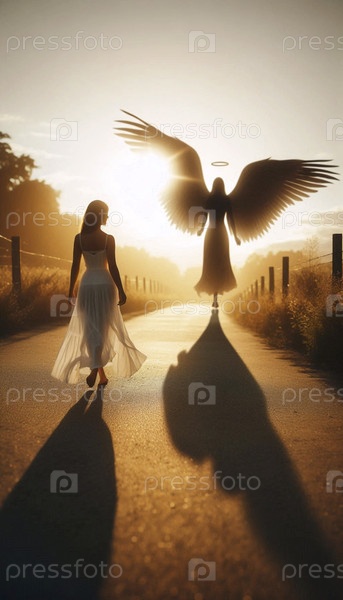Женщина, чья тень является ангелом-хранителем, Ai generated image