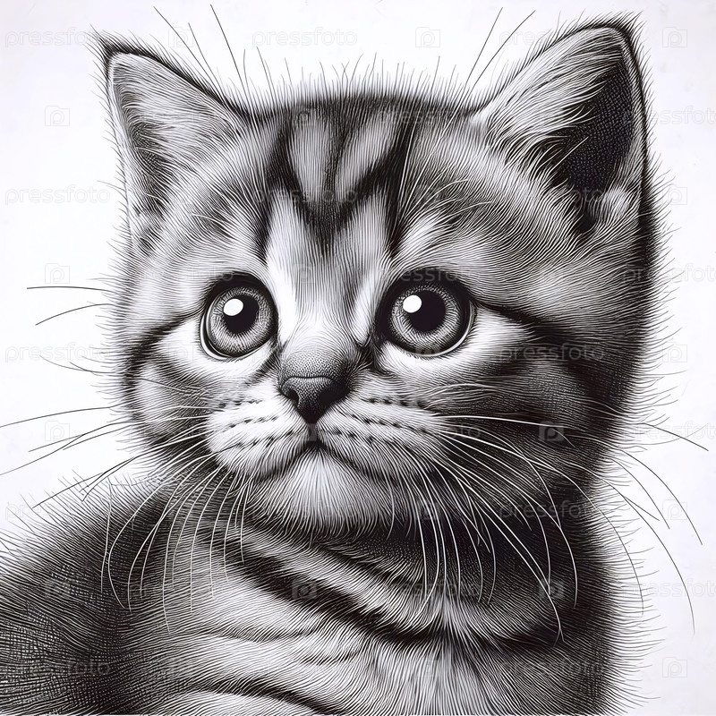 Котенок чернила рисование арт-принт, Ai generated image A