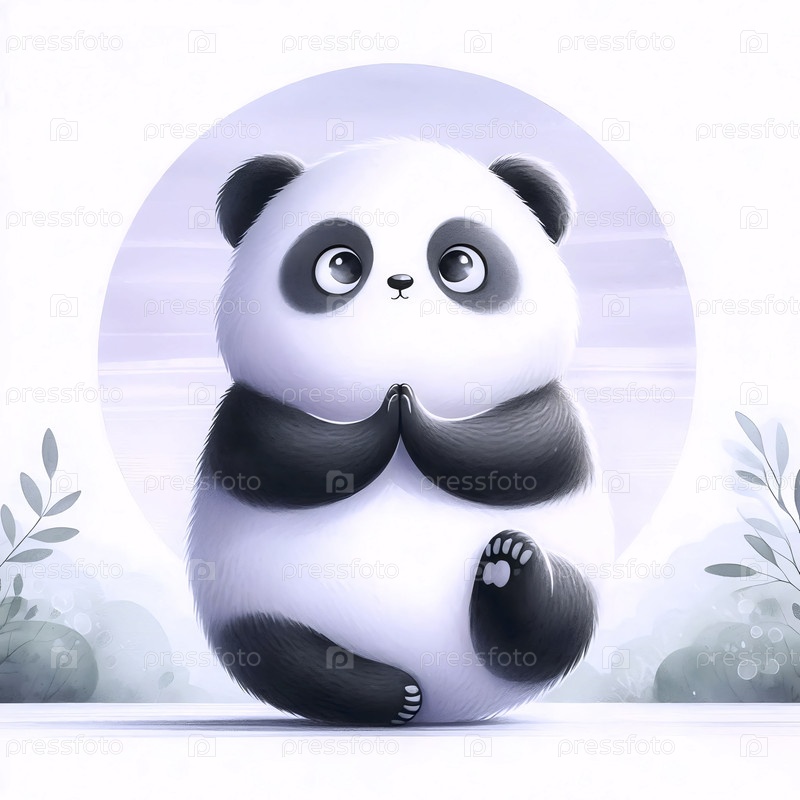 Панда практикует йогу А акварельный арт-принт, Ai generated image