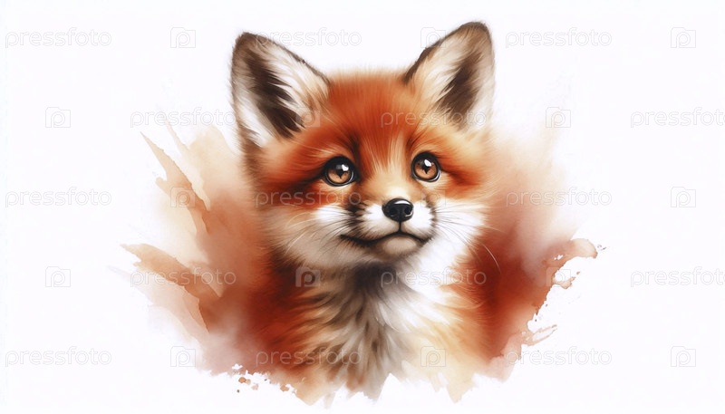 Pleading Fox акварельный художественный печат, Ai generated image