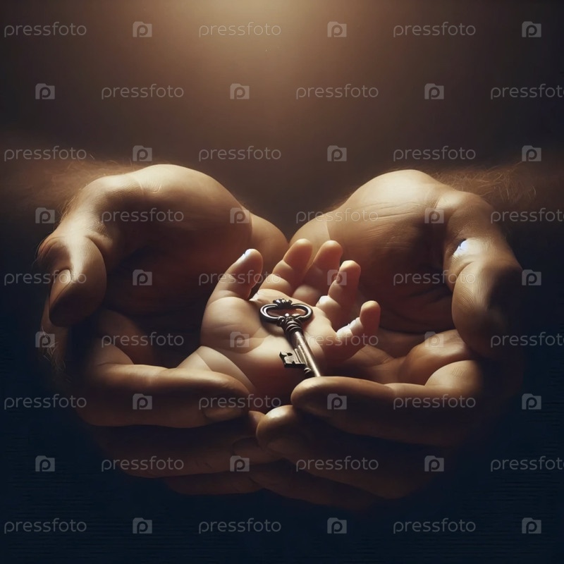 Более широкий, мягко освещенный портрет рук отца в колыбели руки ребенка, Ай создал изображение