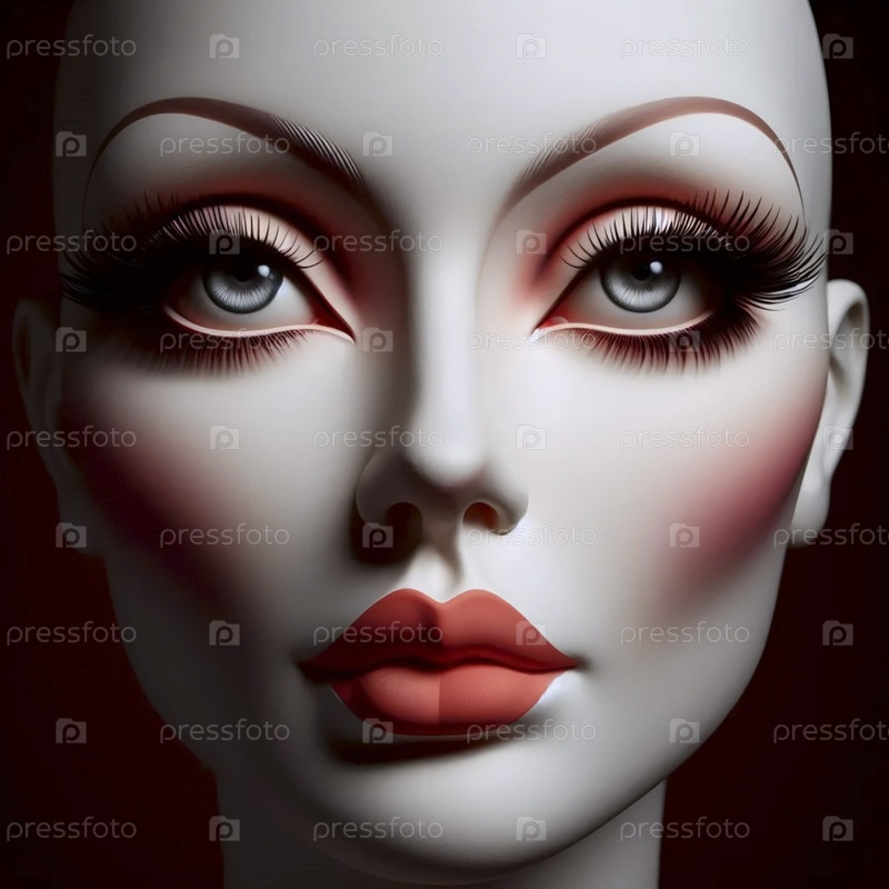 Макияж, нанесенный на голову гипсового парика, Ai generated image