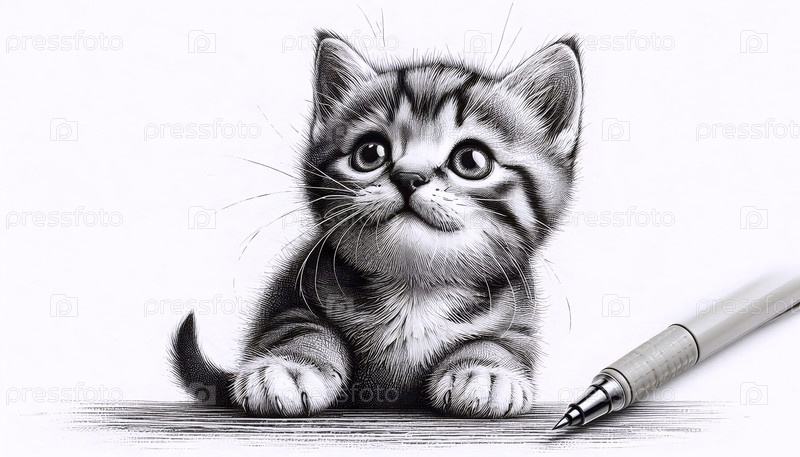 Котенок чернила рисование арт-принт, Ai generated image A