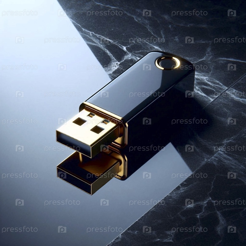 Позолоченный макет USB-накопителя размещен на листе черного гранита, Ai создал изображение