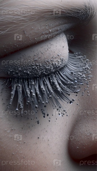Ангельские ресницы с городской сажей, приклеенные к ним, экстремальный крупный план, Ai generated image