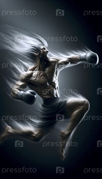 Фотография с длинной экспозицией, захватывающая боксера в центре крюка, Ai generated image