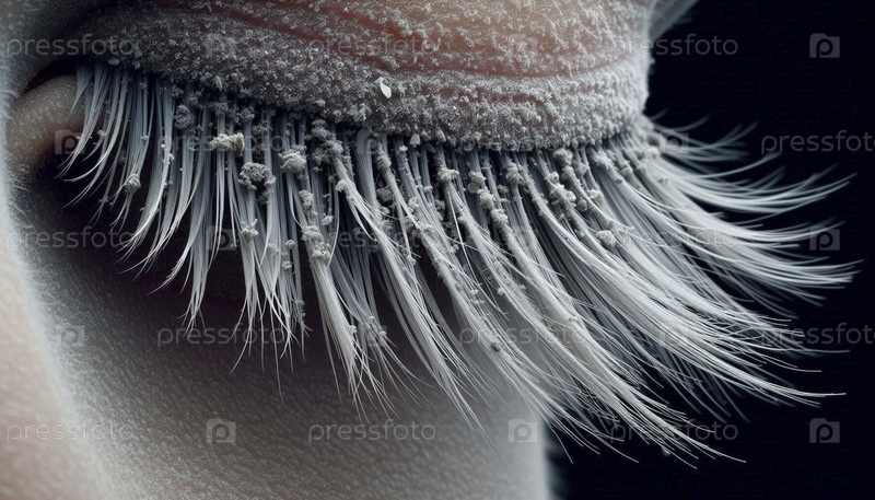 Ангельские ресницы с городской сажей, приклеенные к ним, экстремальный крупный план, Ai generated image