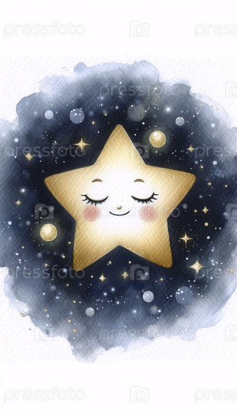 Мечтательная звезда акварельный арт-принт, Ai generated image A