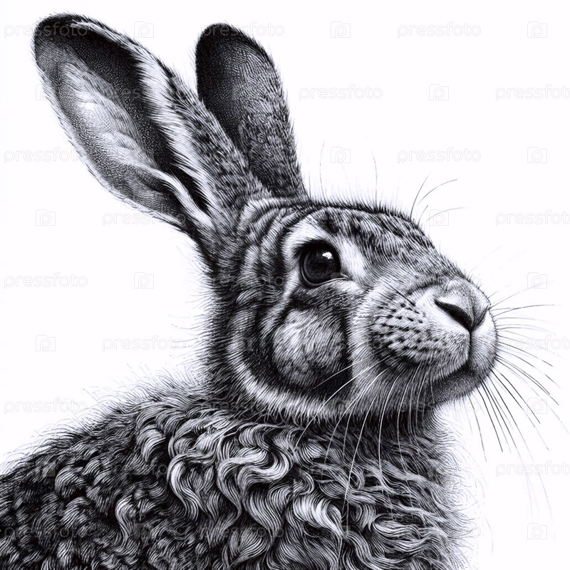 Bunny ink drawing art print, Ai generated image A Аи создал изображение с чернилами кроликов