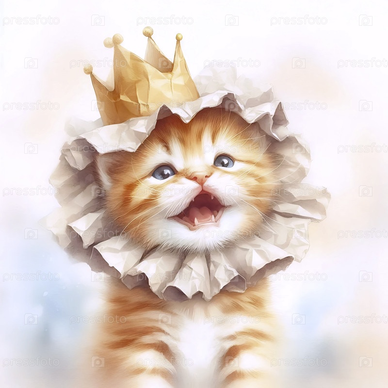 Котенок как маленький лев Акварельный художественный печат, Ai generated image