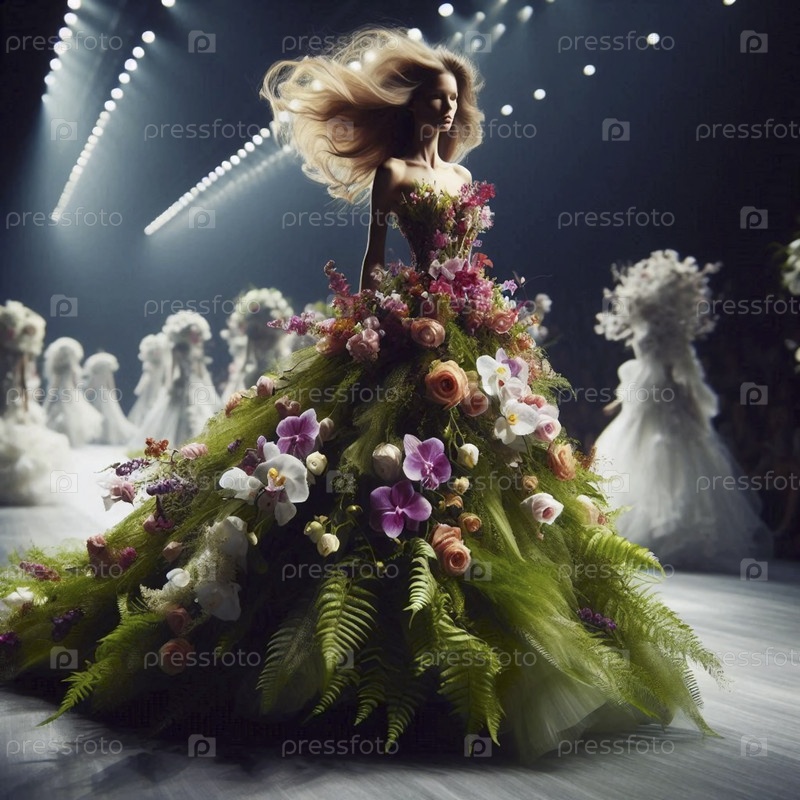 Платье, сделанное из живых цветов на взлетно-посадочной полосе, Ай создал образ