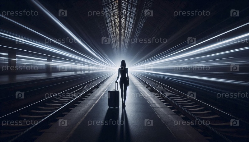 Широкий, минималистский снимок в темном пустом железнодорожном вокзале ночью Ai создал изображение