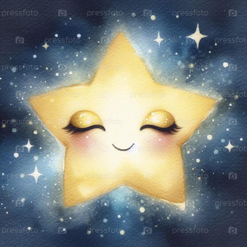 Мечтательная звезда акварельный арт-принт, Ai generated image A