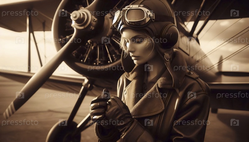 Пилот сепийского тона готовит портрет, Ai generated image