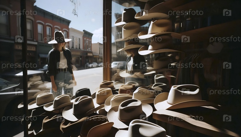 Отражение шляпного магазина в пыльном окне, Ai generated image
