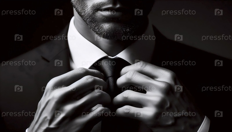 Руки мужчины связывают галстук на другом человеке, Ai generated image