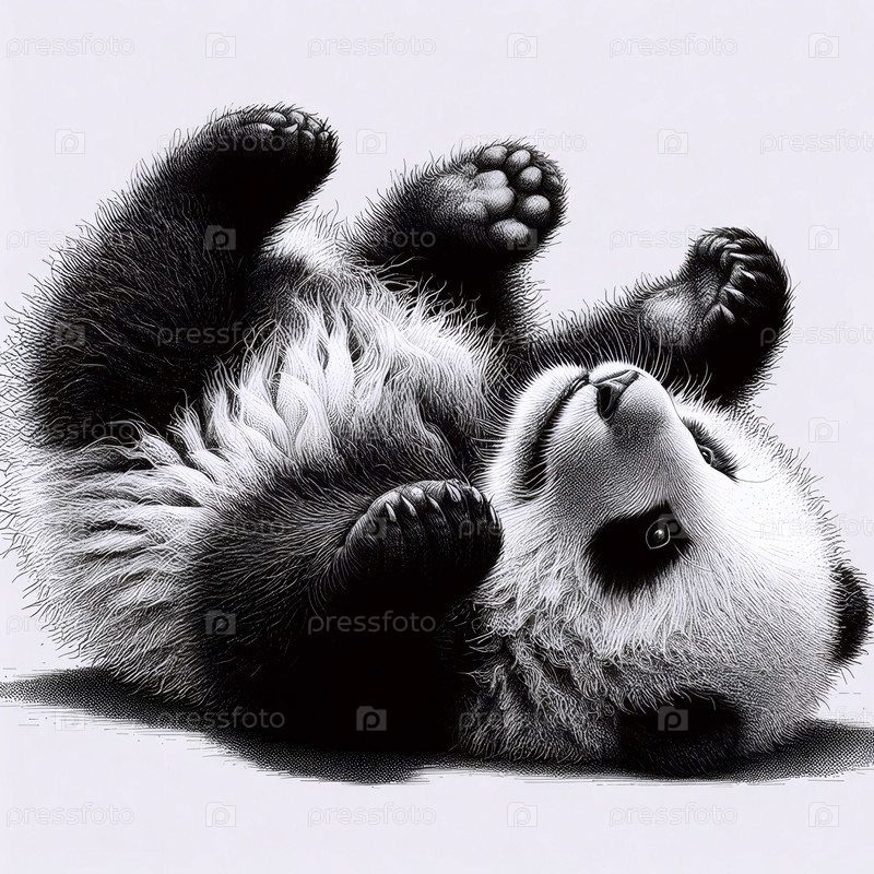 Panda Cub Playing ink A drawing art print, Ai generated image Панда Куб играет с чернилами рисуя художественную печать, Ай создал изображение