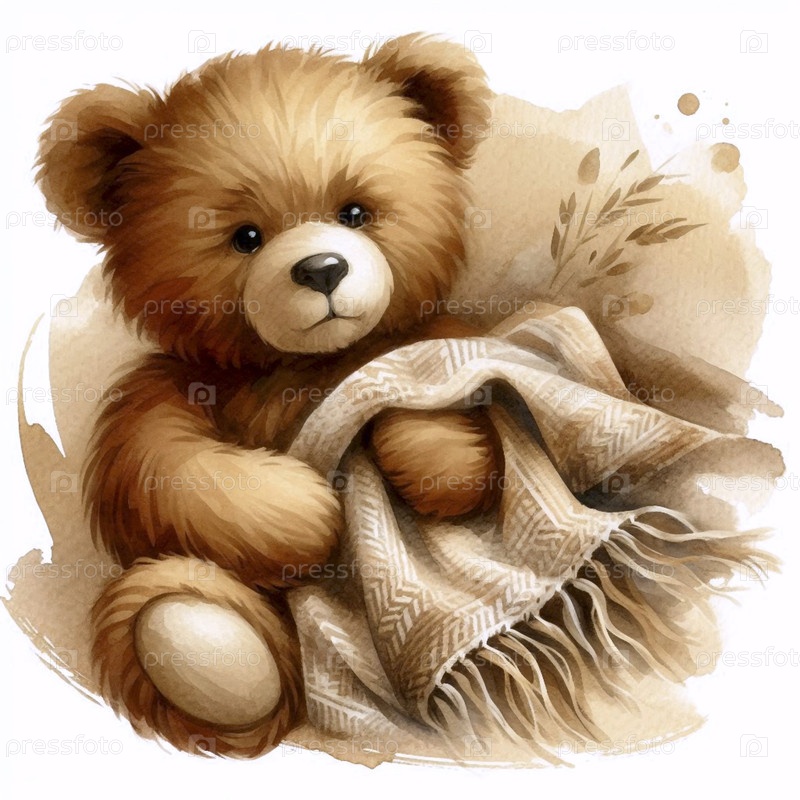 Тедди-медведь с одеялом Аквариальное художественное печать, Ai generated image