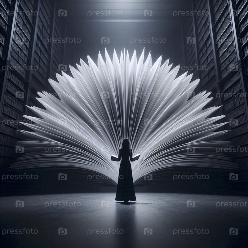 Широкая, минималистичная фотография в темной пустой библиотеке Ai generated image