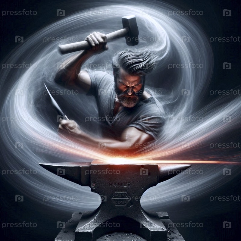 Фотография с длительной экспозицией, захватывающий удар молоток кузнеца, Ai generated image