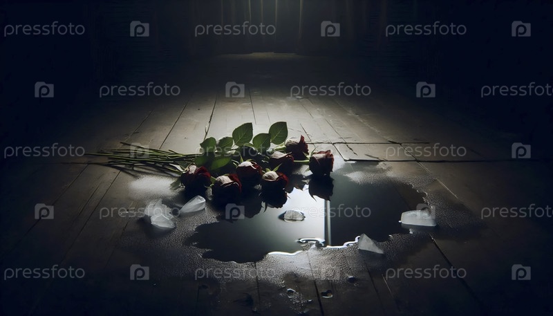 Букет у ее ног в луже тающего льда, Ай создала изображение