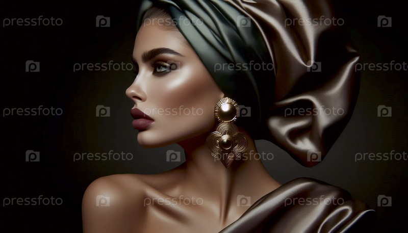 Женщина в шелковом тюрбане с серьгами, Ai generated image
