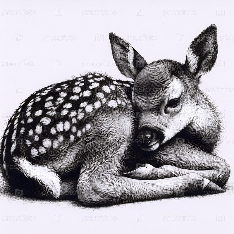 Resting Fawn чернила рисование Арт-принт, Ai generated image