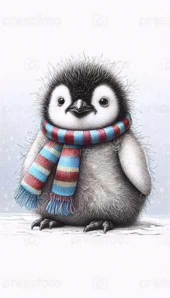Ребенок пингвин с шарфом чернил рисует художественный принт, Ai generated image