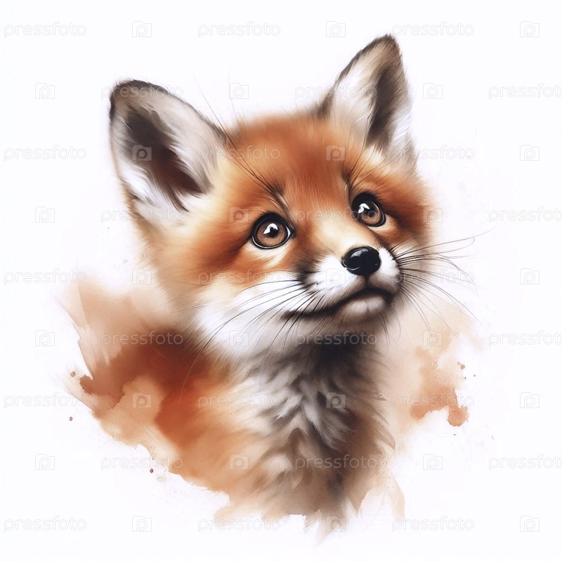Pleading Fox акварельный художественный печат, Ai generated image