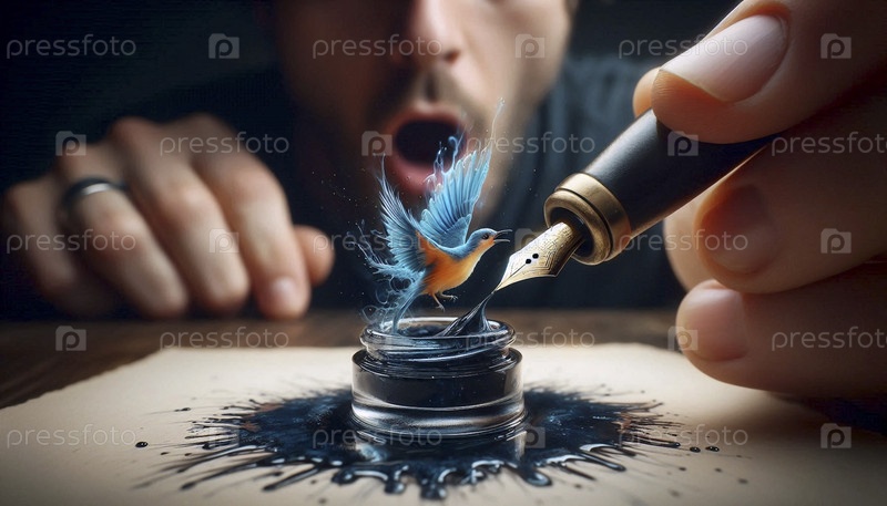 Пятна чернил, превращающиеся в птицу акварели, Ai generated image