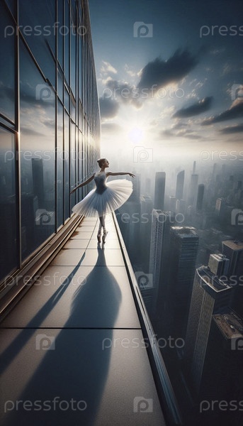 Балерина на крыше небоскреба, Ai generated image