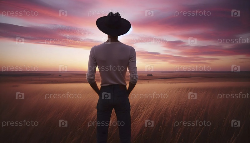 Модный портрет на закате прерии, Ai generated image
