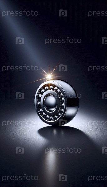 Мокет шарика из одной хромированной стали на магнитной поверхности, подвешенный в темноте, Ai generated image