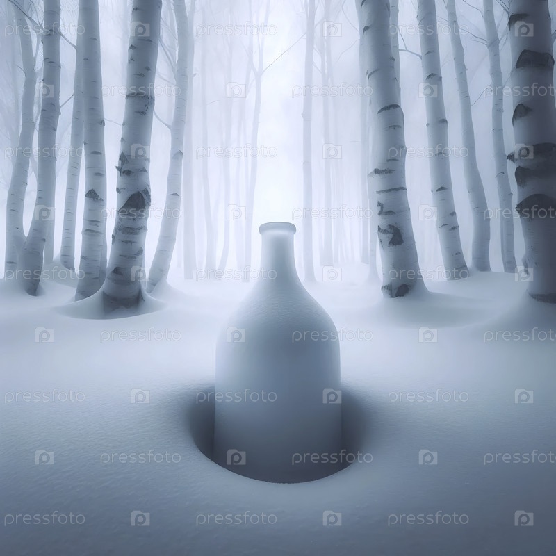 Мокет стеклянной бутылки мороженого, частично похороненный в свежем изображении, созданном AI