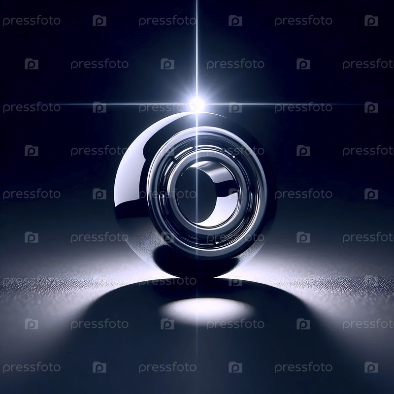Мокет шарика из одной хромированной стали на магнитной поверхности, подвешенный в темноте, Ai generated image