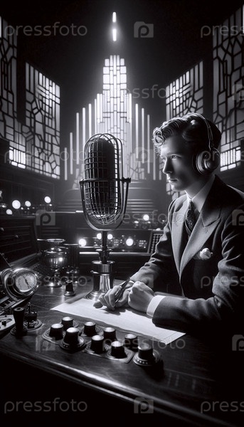 Радиоведущий 1930-х годов в студии арт-деко, Ай создал изображение