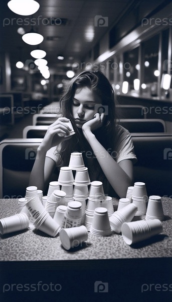 Замок, построенный из пустых чашек кофе, Ai generated image