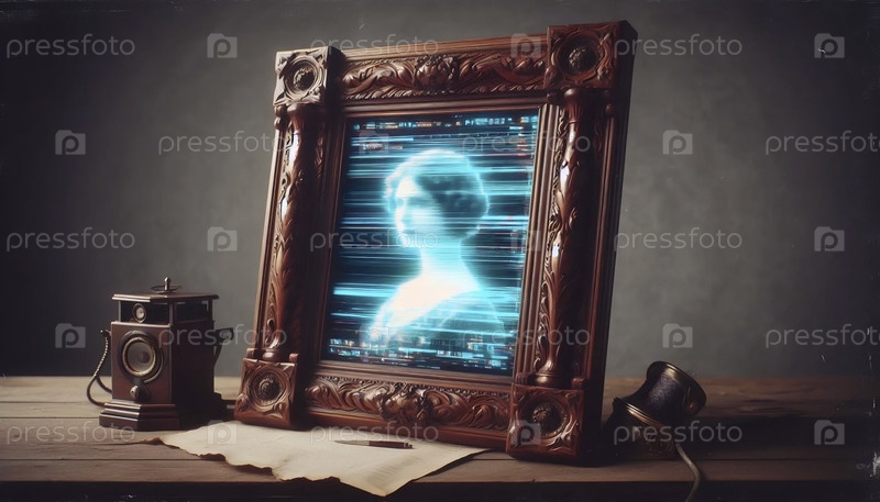 Ретрофутуристический портрет голограммы в кадре, Ai generated image